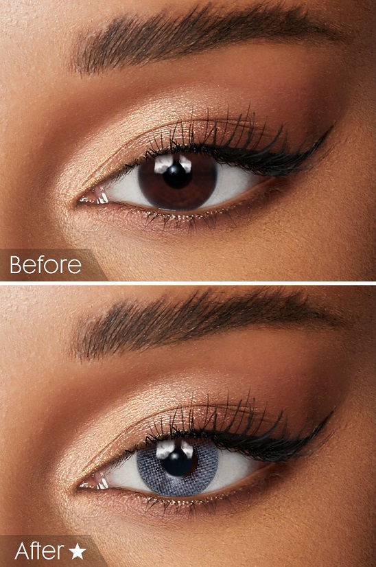 Just keep in mind: the final look can vary slightly depending on your natural eye color and lighting. Most of our models have dark brown eyes, and the photos are taken in bright studio lights.