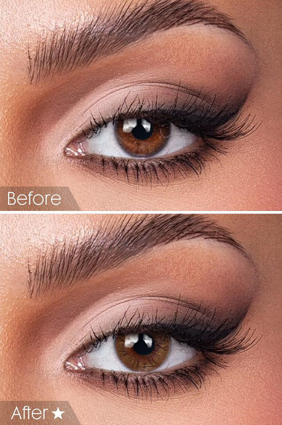 Just keep in mind: the final look can vary slightly depending on your natural eye color and lighting. Most of our models have dark brown eyes, and the photos are taken in bright studio lights.