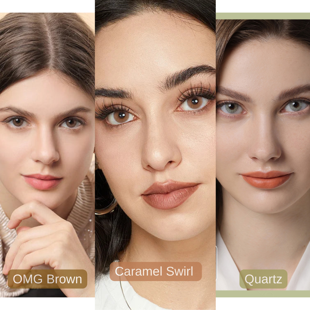 Just keep in mind: the final look can vary slightly depending on your natural eye color and lighting. Most of our models have dark brown eyes, and the photos are taken in bright studio lights.