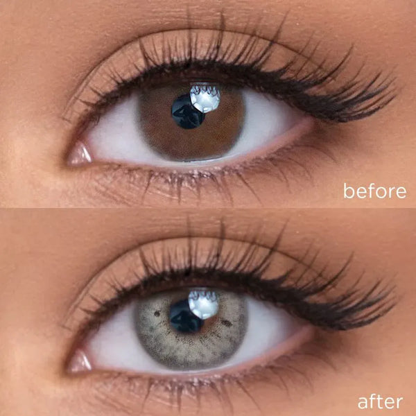 Just keep in mind: the final look can vary slightly depending on your natural eye color and lighting. Most of our models have dark brown eyes, and the photos are taken in bright studio lights.